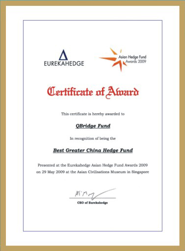2009年 由 EurekaHedge 颁发的“最佳大中华区基金”